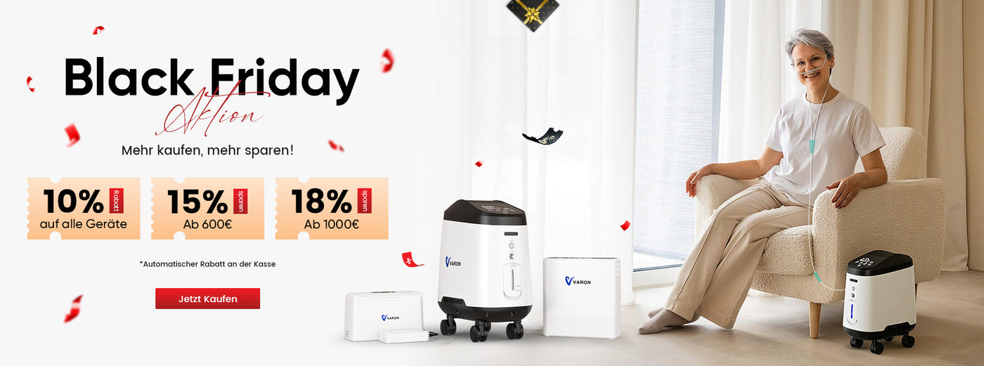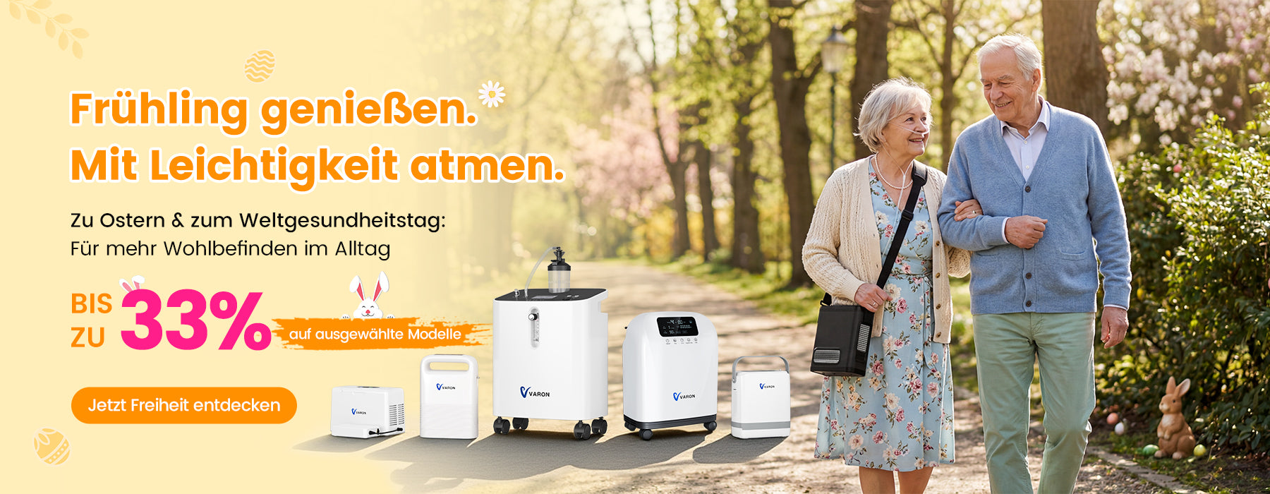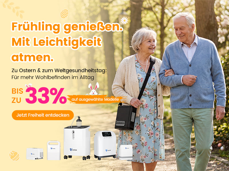 Der VARON VP-6 ist einer der fortschrittlichsten tragbaren Sauerstoffkonzentratoren (POC) auf dem Markt. Sein Sauerstoffdurchfluss ist von 1 bis 6 stugen einstellbar und gewährleistet bei einer Einstellung von 1 l eine hohe Sauerstoffkonzentration von bis zu 90 %.