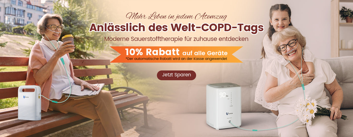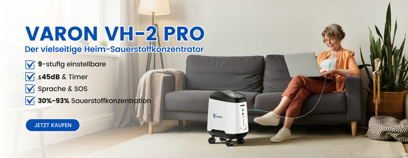 Der VARON VP-6 ist einer der fortschrittlichsten tragbaren Sauerstoffkonzentratoren (POC) auf dem Markt. Sein Sauerstoffdurchfluss ist von 1 bis 6 stugen einstellbar und gewährleistet bei einer Einstellung von 1 l eine hohe Sauerstoffkonzentration von bis zu 90 %.