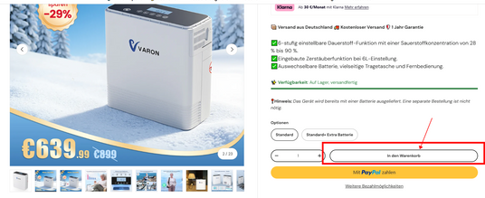 Klicken Sie auf den Button „In den Warenkorb“, um die gewünschten Produkte hinzuzufügen.