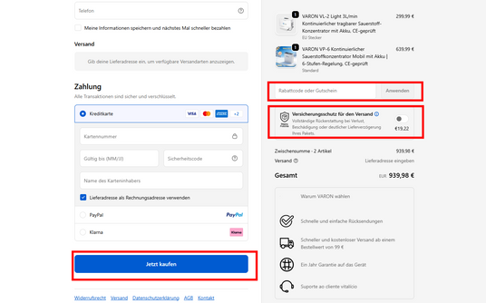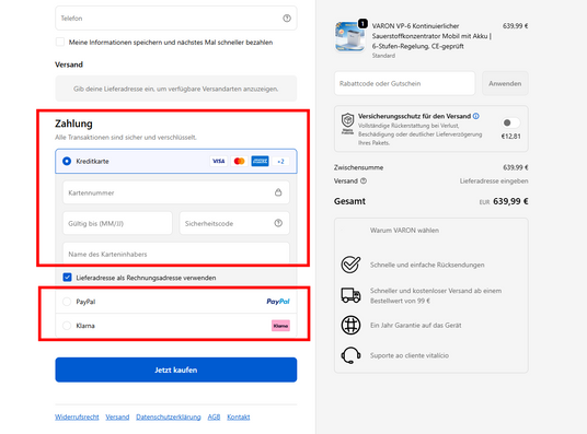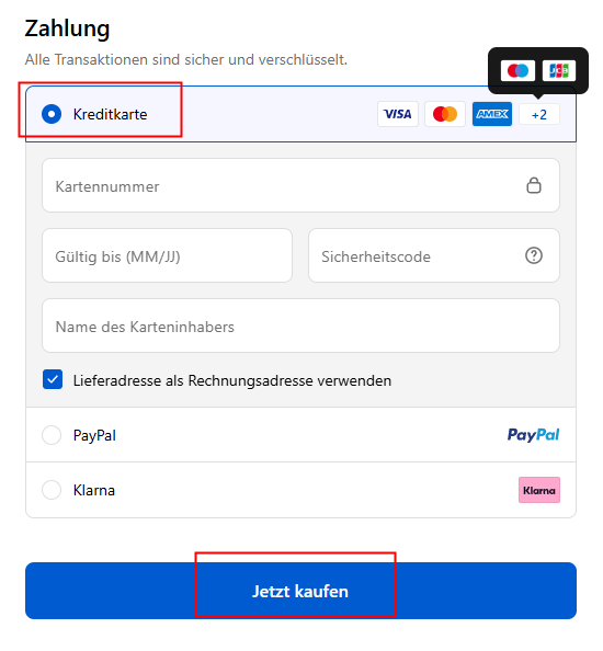 Überprüfen Sie alle Angaben und den Endbetrag. Klicken Sie dann auf „Jetzt kaufen“, um zur endgültigen Zahlungsbestätigung (z.B. Eingabe Ihrer PIN oder Weiterleitung zu PayPal) weitergeleitet zu werden. Mit dieser Bestätigung ist Ihr Kauf abgeschlossen.