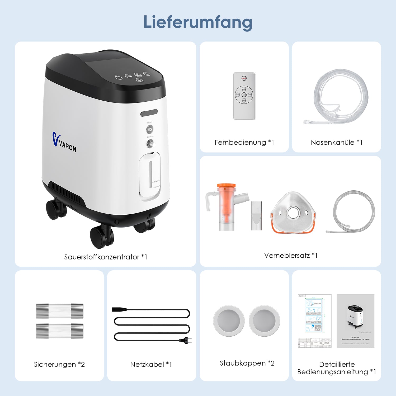 VARON VH-2 Pro Heim-Sauerstoffkonzentrator | 9-Stufen-Regelung, 24 Stunden Betrieb, CE-geprüft