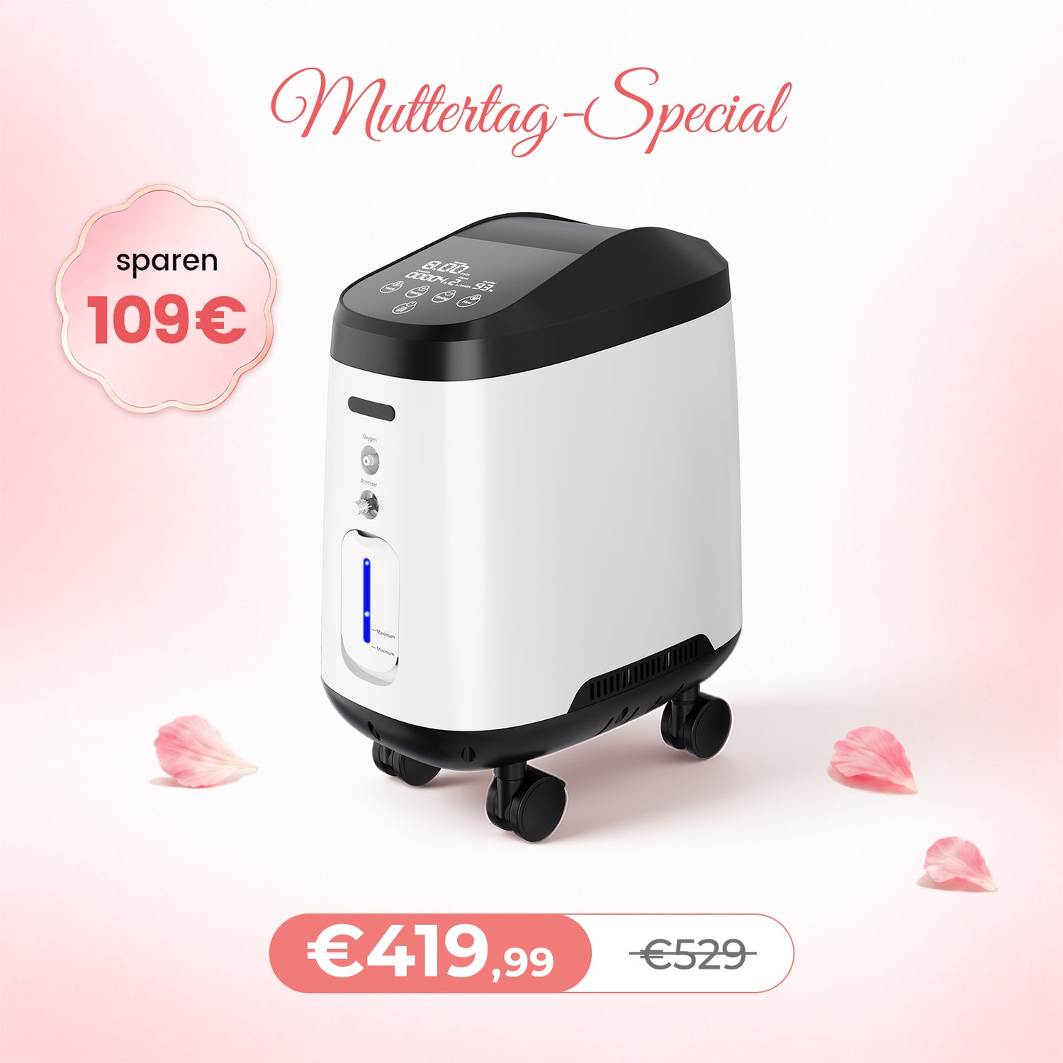 - Flujo de oxígeno: 9-stufig einstellbar
